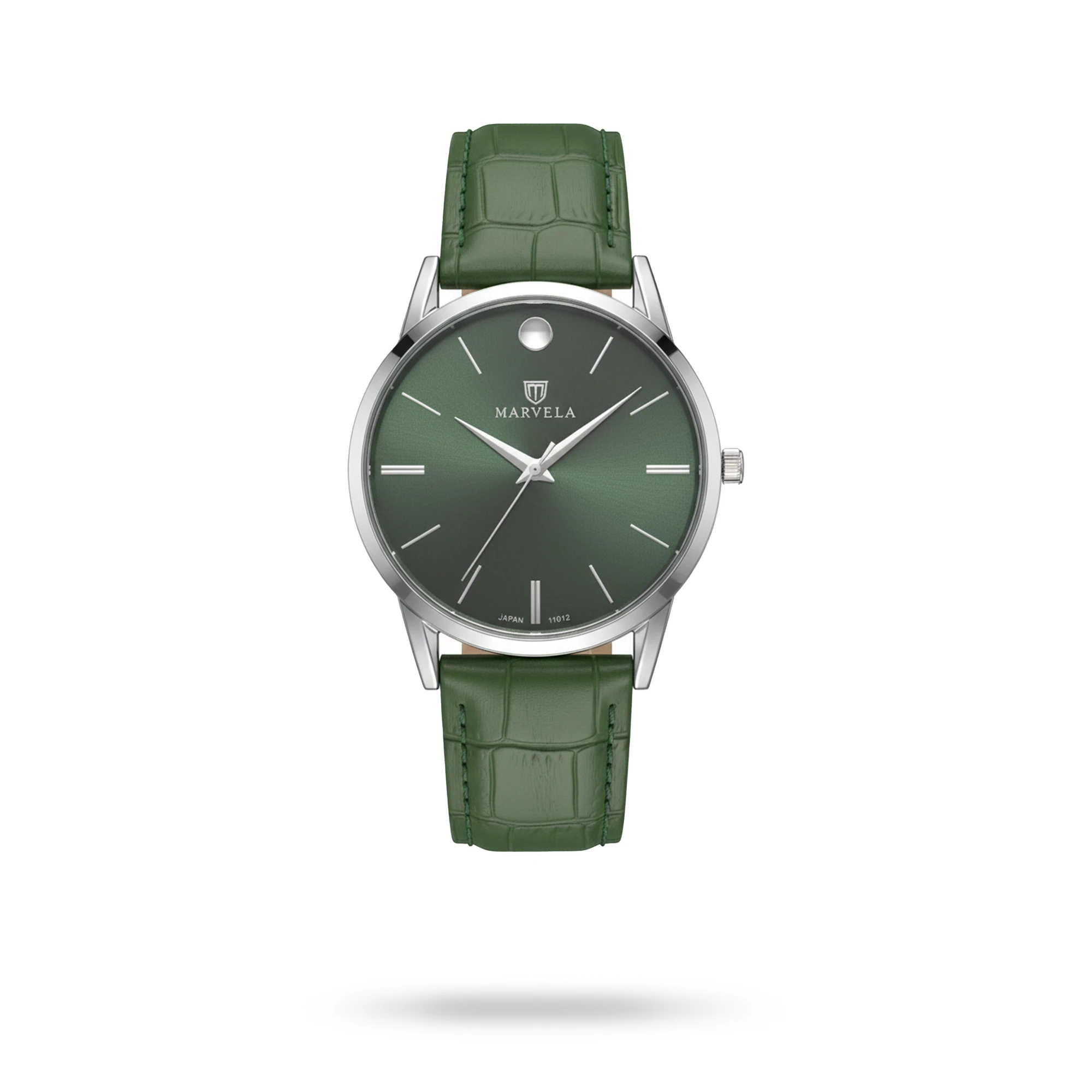 ساعت مارولا زنانه کد MR11012L-0009، ساعتی بسیار زیبا با رفرانس 11012، از نوع کلاسیک بوده و جنس بند آن، چرمی می باشد. رنگ قاب این محصول، استیل، رنگ بند آن سبز و رنگ صفحه آن سبز بوده و استایلی زیبا برای شما فراهم می کند.