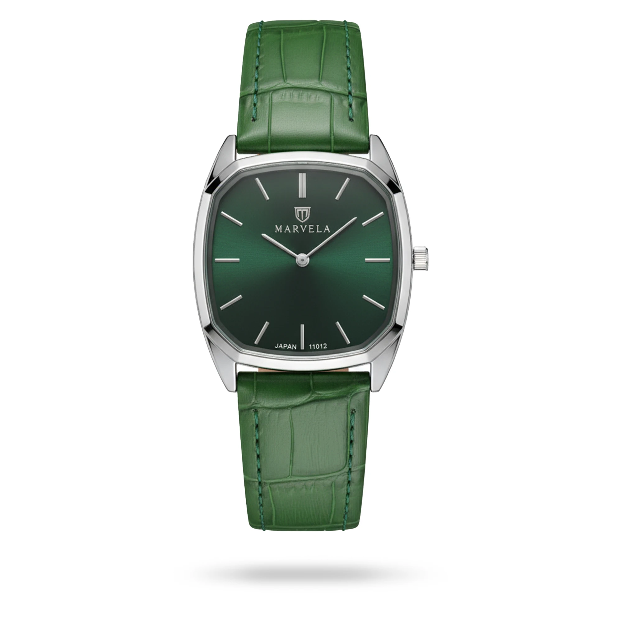 ساعت مارولا مردانه کد MR11014G-0009، ساعتی بسیار زیبا با رفرانس 11014، از نوع کلاسیک بوده و جنس بند آن، چرمی می باشد. رنگ قاب این محصول، استیل، رنگ بند آن سبز و رنگ صفحه آن سبز بوده و استایلی زیبا برای شما فراهم می کند.