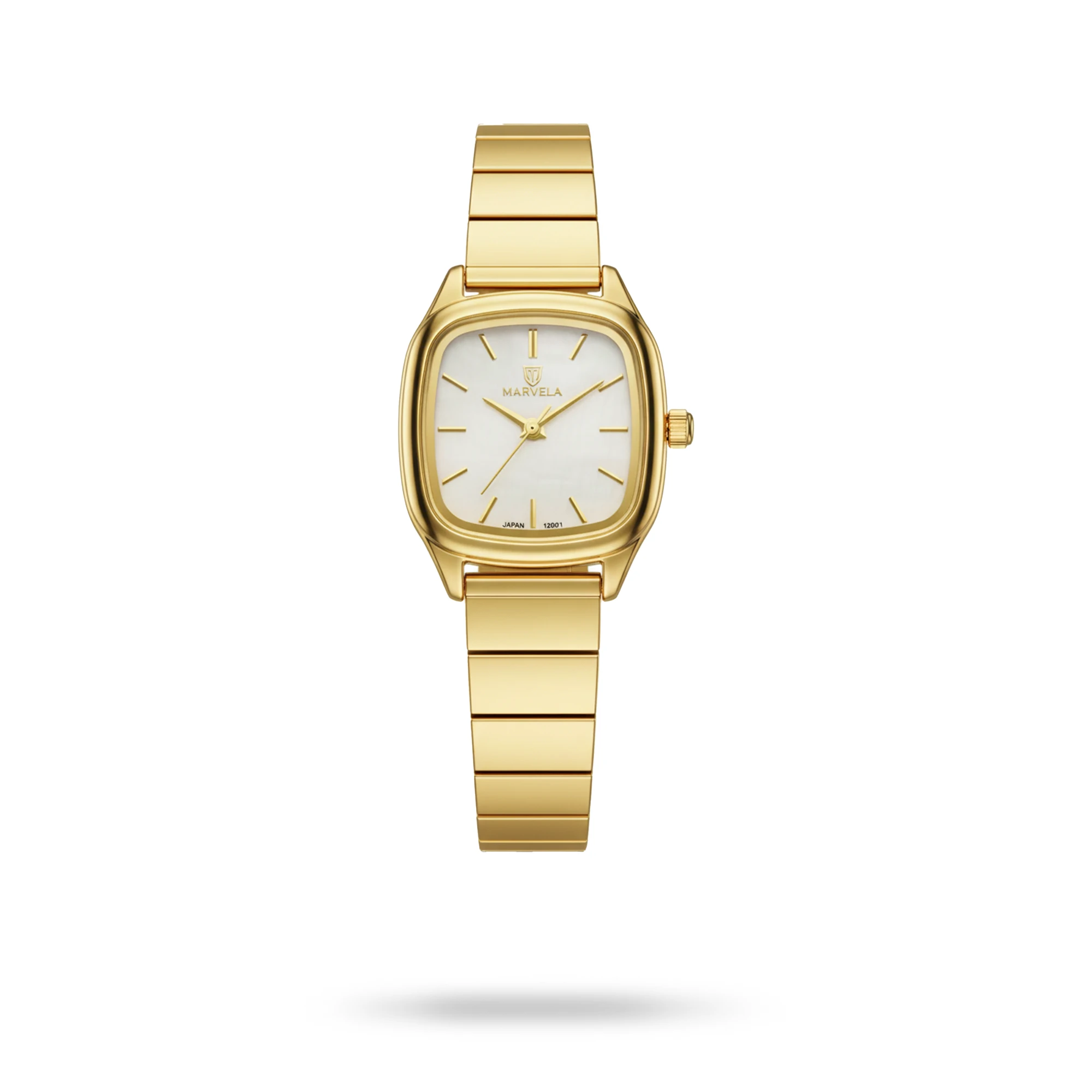 ساعت مارولا زنانه کد MR12001L-0001، ساعتی بسیار زیبا با رفرانس 12001، از نوع کلاسیک بوده و جنس بند آن، فلزی می باشد. رنگ قاب این محصول، طلایی، رنگ بند آن طلایی و رنگ صفحه آن سیلور بوده و استایلی زیبا برای شما فراهم می کند.
