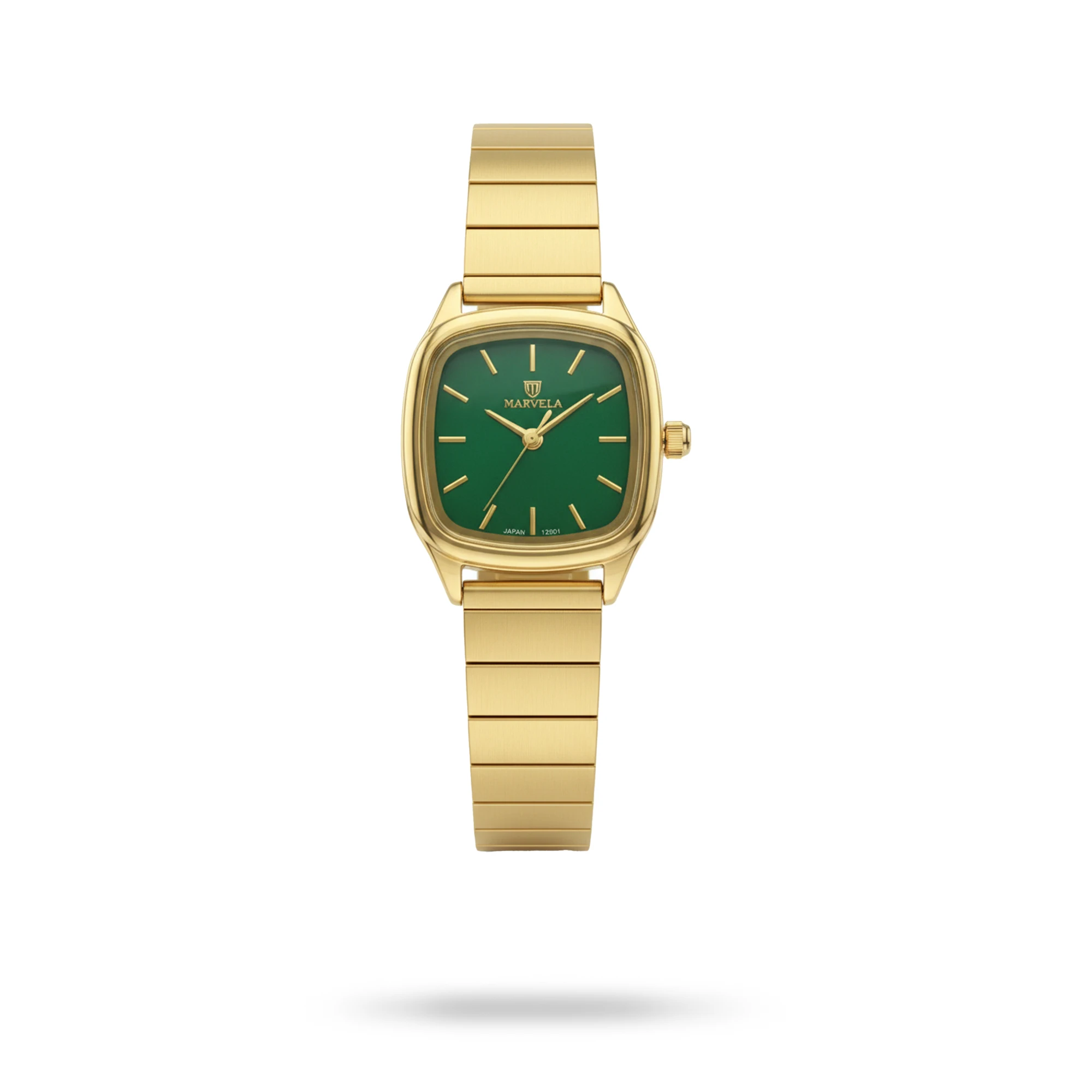 ساعت مارولا زنانه کد MR12001L-0107، ساعتی بسیار زیبا با رفرانس 12001، از نوع کلاسیک بوده و جنس بند آن، فلزی می باشد. رنگ قاب این محصول، طلایی، رنگ بند آن سبز و رنگ صفحه آن سبز بوده و استایلی زیبا برای شما فراهم می کند.
