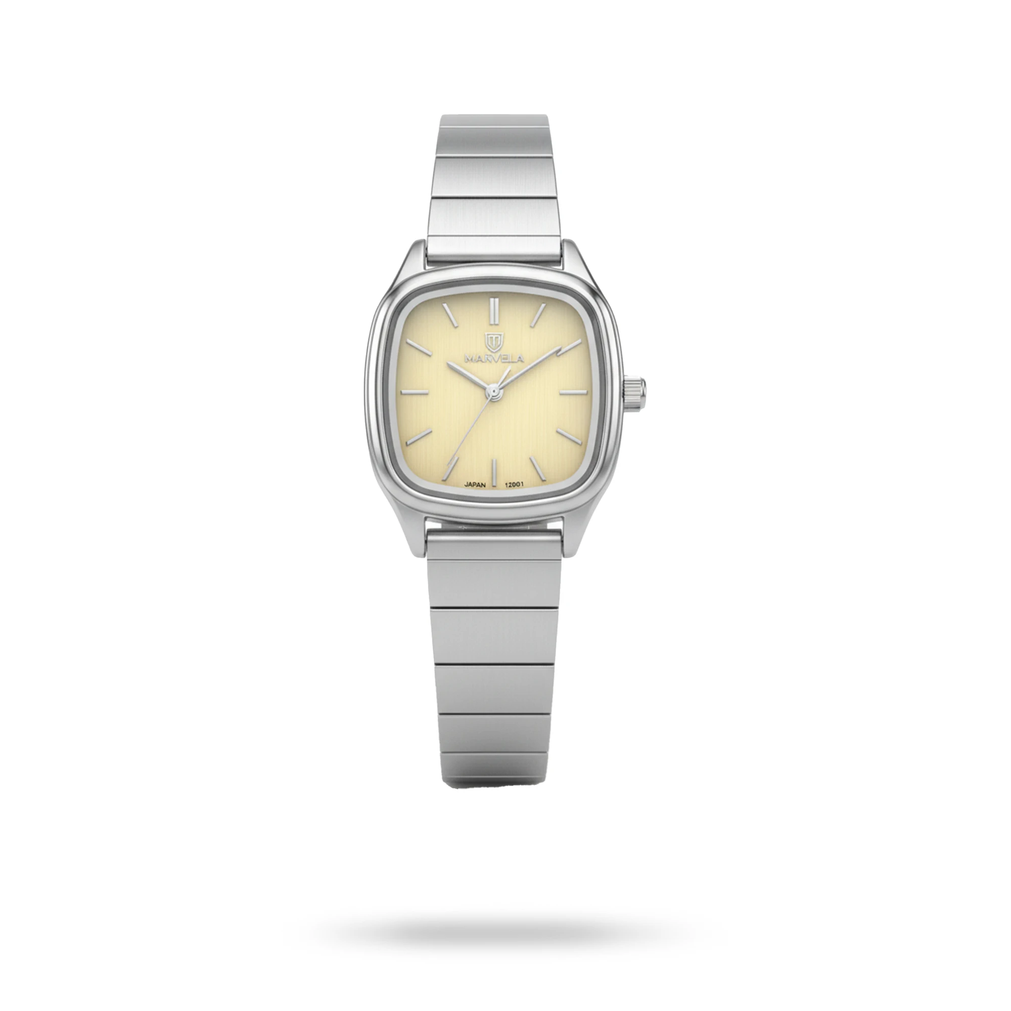 ساعت مارولا زنانه کد MR12001L-0301، ساعتی بسیار زیبا با رفرانس 12001، از نوع کلاسیک بوده و جنس بند آن، فلزی می باشد. رنگ قاب این محصول، استیل، رنگ بند آن استیل و رنگ صفحه آن زرد بوده و استایلی زیبا برای شما فراهم می کند.