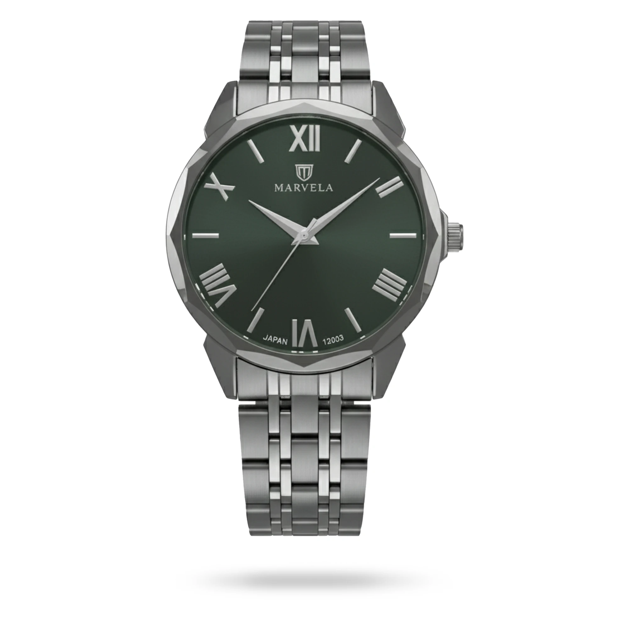 ساعت مارولا مردانه کد MR12003G-0012، ساعتی بسیار زیبا با رفرانس 12003، از نوع کلاسیک بوده و جنس بند آن، فلزی می باشد. رنگ قاب این محصول، دودی، رنگ بند آن دودی و رنگ صفحه آن سبز بوده و استایلی زیبا برای شما فراهم می کند.