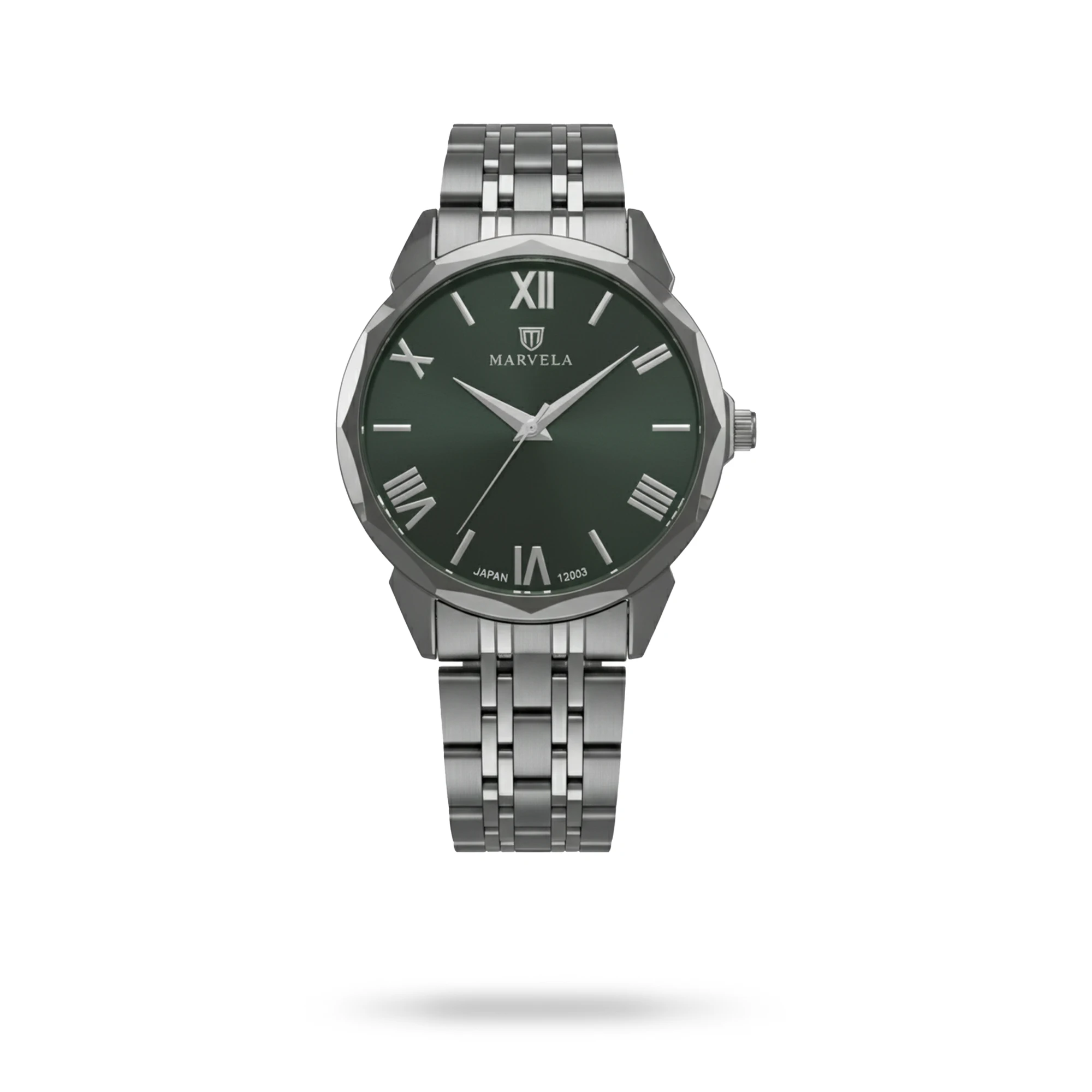 ساعت مارولا زنانه کد MR12003L-0012، ساعتی بسیار زیبا با رفرانس 12003، از نوع کلاسیک بوده و جنس بند آن، فلزی می باشد. رنگ قاب این محصول، دودی، رنگ بند آن دودی و رنگ صفحه آن سبز بوده و استایلی زیبا برای شما فراهم می کند.