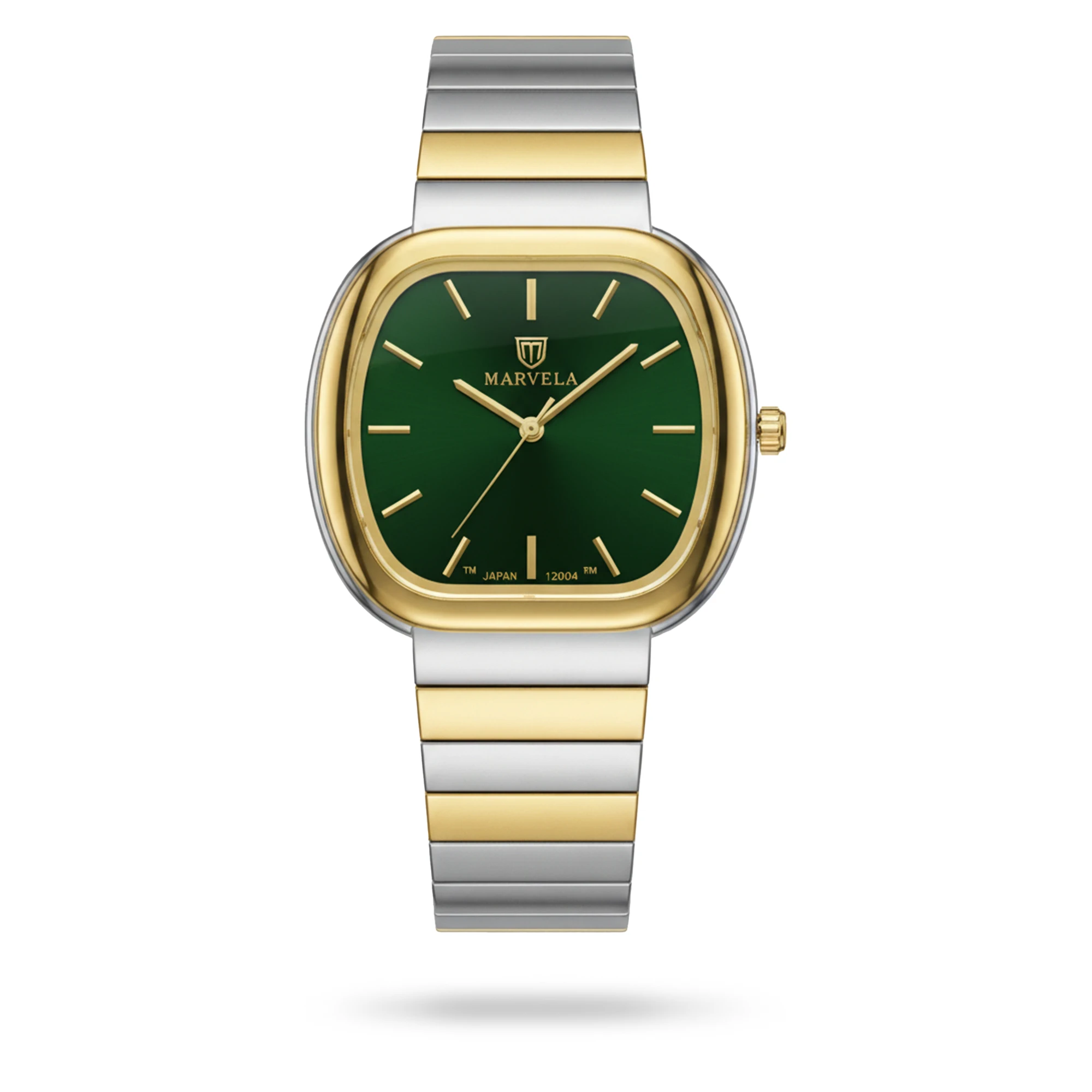 ساعت مارولا مردانه کد MR12004G-0100، ساعتی بسیار زیبا با رفرانس 12004، از نوع کلاسیک بوده و جنس بند آن، فلزی می باشد. رنگ قاب این محصول، استیل طلایی، رنگ بند آن استیل طلایی و رنگ صفحه آن سبز بوده و استایلی زیبا برای شما فراهم می کند.