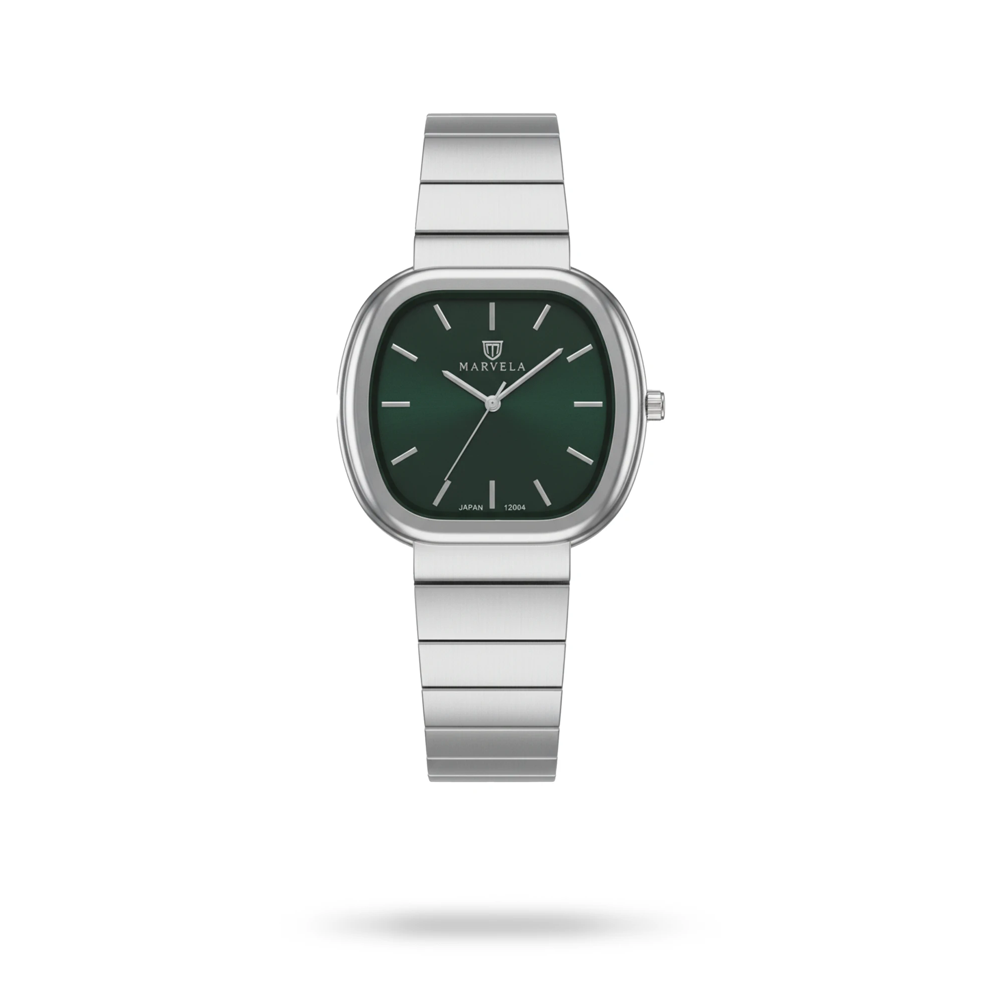 ساعت مارولا زنانه کد MR12004L-0009، ساعتی بسیار زیبا با رفرانس 12004، از نوع کلاسیک بوده و جنس بند آن، فلزی می باشد. رنگ قاب این محصول، استیل، رنگ بند آن استیل و رنگ صفحه آن سبز بوده و استایلی زیبا برای شما فراهم می کند.