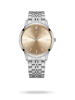 ساعت مارولا زنانه کد MR12008L-0005، ساعتی بسیار زیبا با رفرانس 12008، از نوع کلاسیک بوده و جنس بند آن، فلزی می باشد. رنگ قاب این محصول، استیل، رنگ بند آن استیل و رنگ صفحه آن مشکی بوده و استایلی زیبا برای شما فراهم می کند.