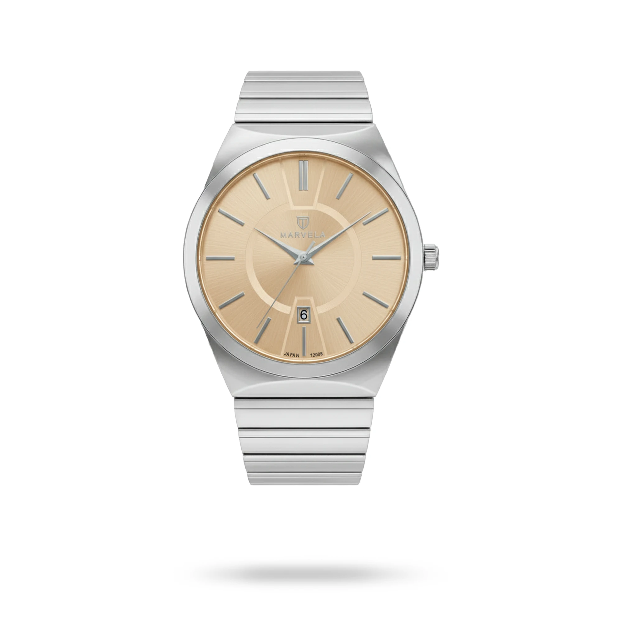 ساعت مارولا زنانه کد MR12008L-0301، ساعتی بسیار زیبا با رفرانس 12008، از نوع کلاسیک بوده و جنس بند آن، فلزی می باشد. رنگ قاب این محصول، استیل، رنگ بند آن استیل و رنگ صفحه آن شامپاین بوده و استایلی زیبا برای شما فراهم می کند.