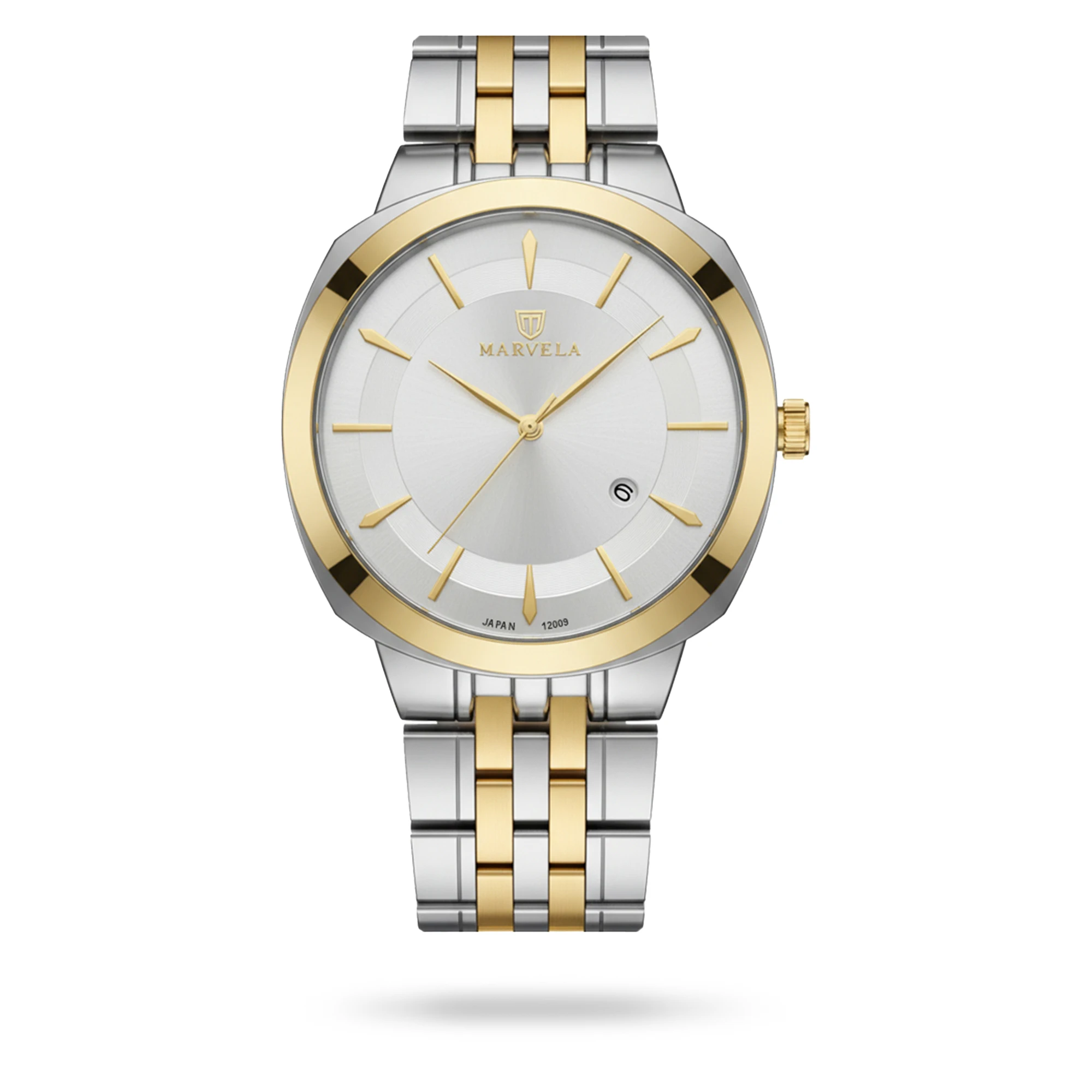 ساعت مارولا مردانه کد MR12009G-0003، ساعتی بسیار زیبا با رفرانس 12009، از نوع کلاسیک بوده و جنس بند آن، فلزی می باشد. رنگ قاب این محصول، استیل طلایی، رنگ بند آن استیل طلایی و رنگ صفحه آن سیلور بوده و استایلی زیبا برای شما فراهم می کند.