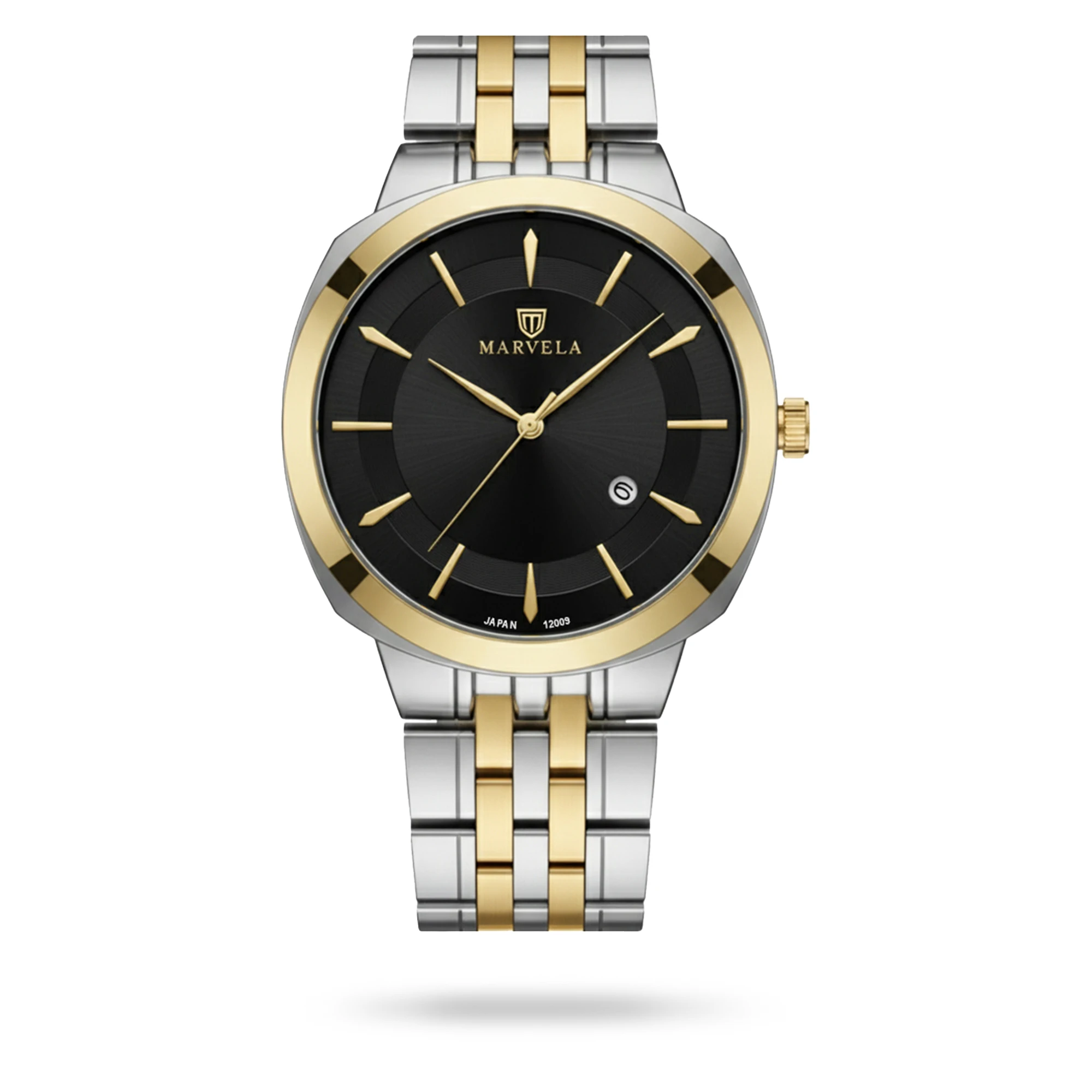 ساعت مارولا مردانه کد MR12009G-0017، ساعتی بسیار زیبا با رفرانس 12009، از نوع کلاسیک بوده و جنس بند آن، فلزی می باشد. رنگ قاب این محصول، استیل طلایی، رنگ بند آن استیل طلایی و رنگ صفحه آن طوسی بوده و استایلی زیبا برای شما فراهم می کند.