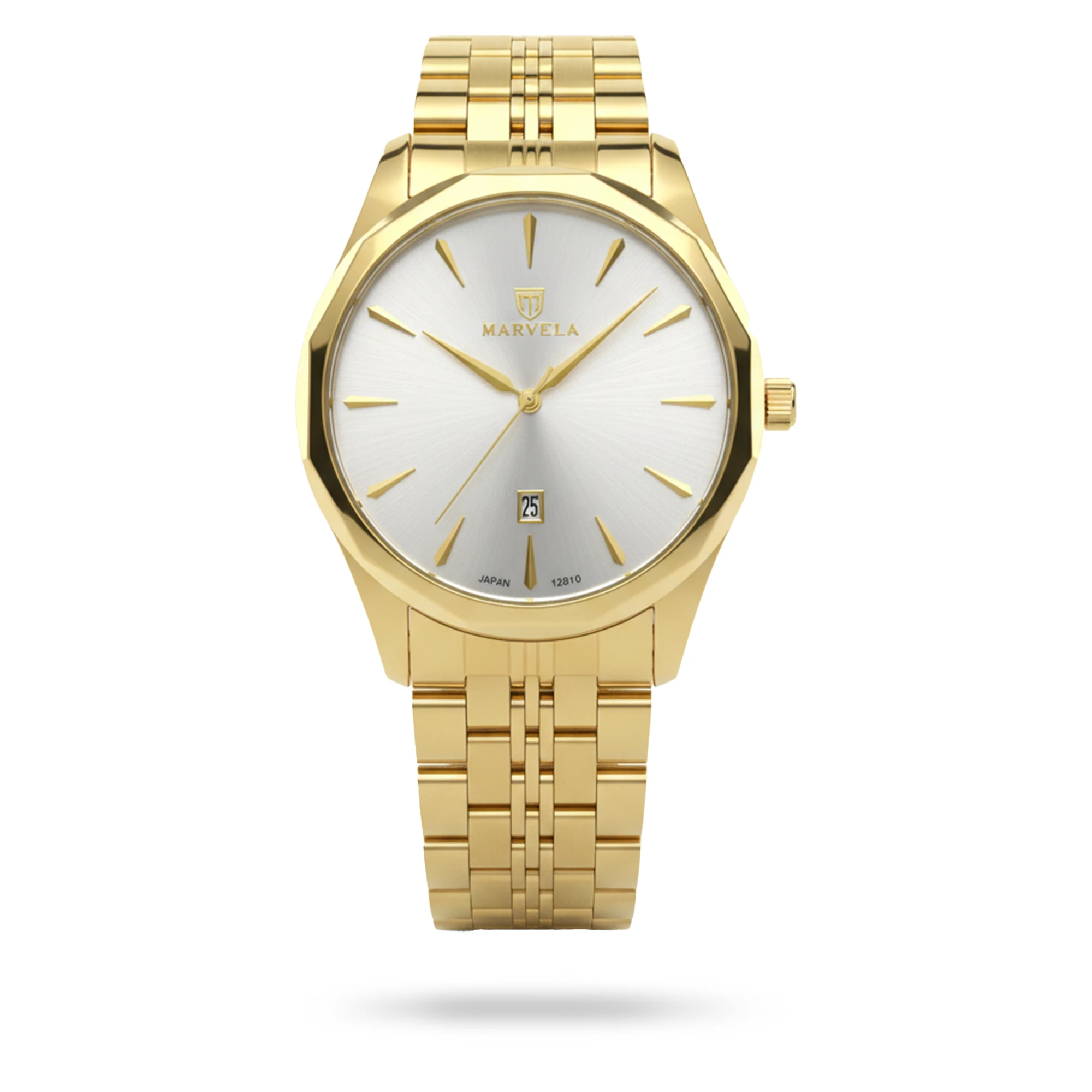 ساعت مارولا مردانه کد MR12010G-0001، ساعتی بسیار زیبا با رفرانس 12010، از نوع کلاسیک بوده و جنس بند آن، فلزی می باشد. رنگ قاب این محصول، طلایی، رنگ بند آن طلایی و رنگ صفحه آن سیلور بوده و استایلی زیبا برای شما فراهم می کند.