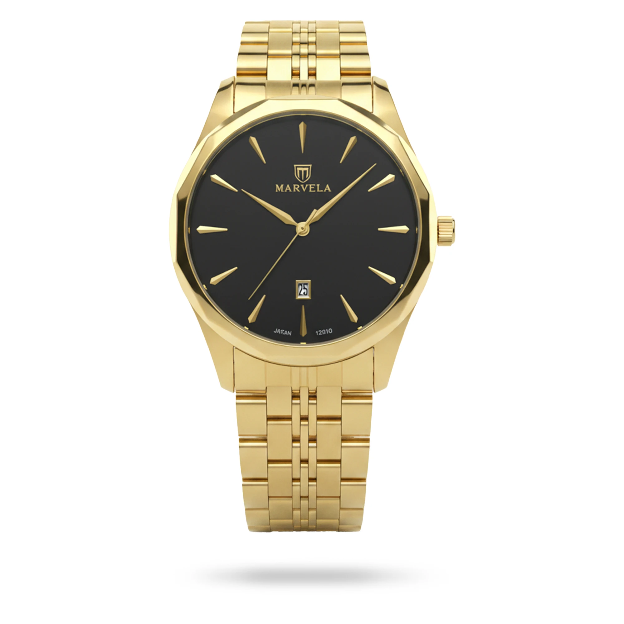 ساعت مارولا مردانه کد MR12010G-0002، ساعتی بسیار زیبا با رفرانس 12010، از نوع کلاسیک بوده و جنس بند آن، فلزی می باشد. رنگ قاب این محصول، طلایی، رنگ بند آن طلایی و رنگ صفحه آن مشکی بوده و استایلی زیبا برای شما فراهم می کند.