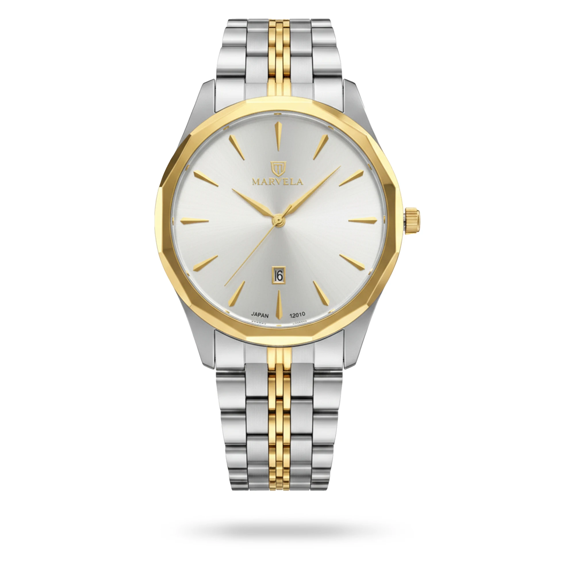 ساعت مارولا مردانه کد MR12010G-0003، ساعتی بسیار زیبا با رفرانس 12010، از نوع کلاسیک بوده و جنس بند آن، فلزی می باشد. رنگ قاب این محصول، استیل طلایی، رنگ بند آن استیل طلایی و رنگ صفحه آن سیلور بوده و استایلی زیبا برای شما فراهم می کند.