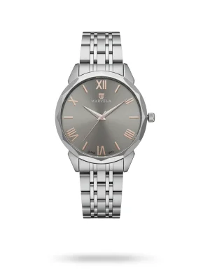 ساعت مارولا زنانه کد MR12016L-0301، ساعتی بسیار زیبا با رفرانس 12016، از نوع کلاسیک بوده و جنس بند آن، فلزی می باشد. رنگ قاب این محصول، استیل، رنگ بند آن استیل و رنگ صفحه آن شامپاین بوده و استایلی زیبا برای شما فراهم می کند.