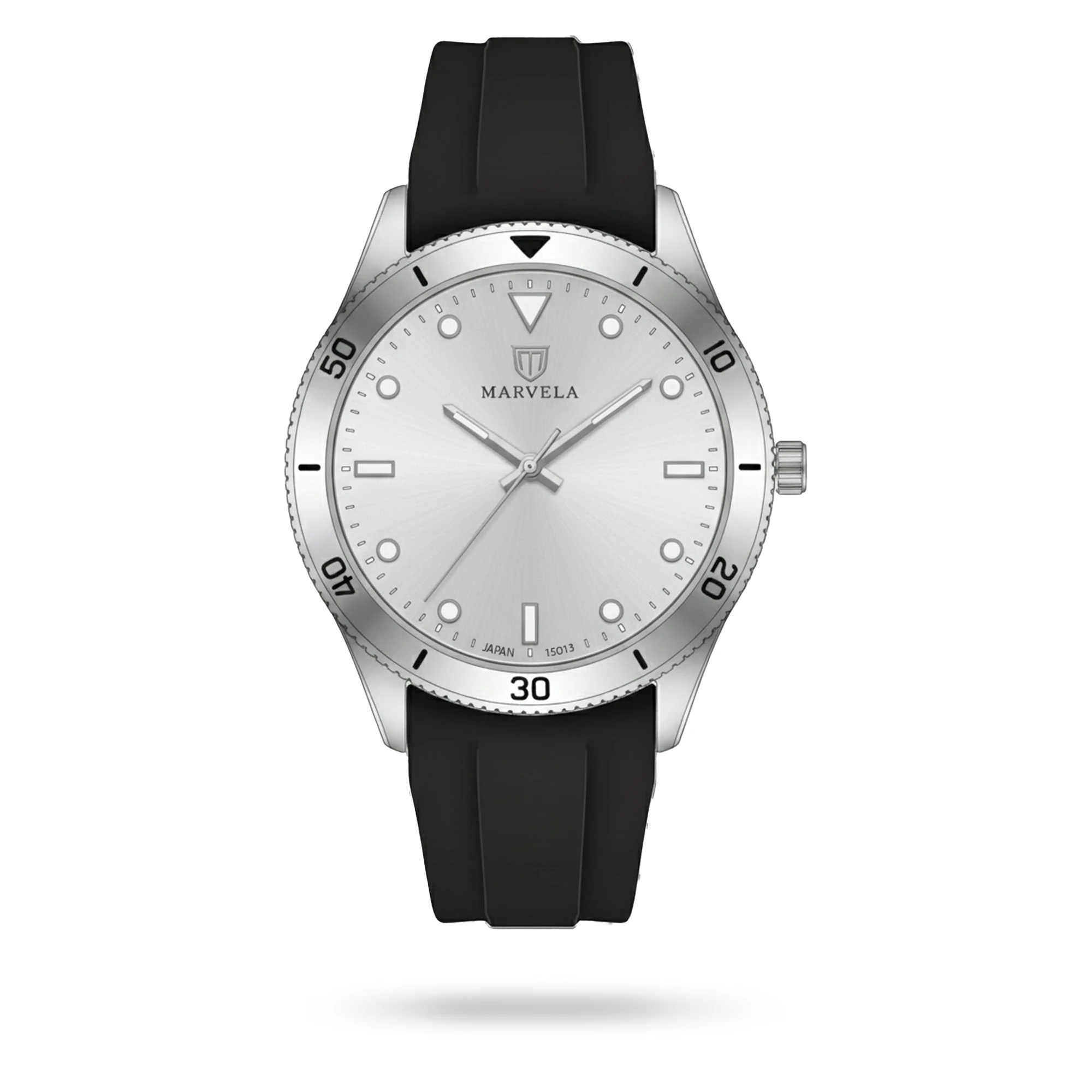 ساعت مارولا مردانه کد MR13011G-0032، ساعتی بسیار زیبا با رفرانس 13011، از نوع اسپرت بوده و جنس بند آن، رابر می باشد. رنگ قاب این محصول، استیل، رنگ بند آن مشکی و رنگ صفحه آن سیلور بوده و استایلی زیبا برای شما فراهم می کند.