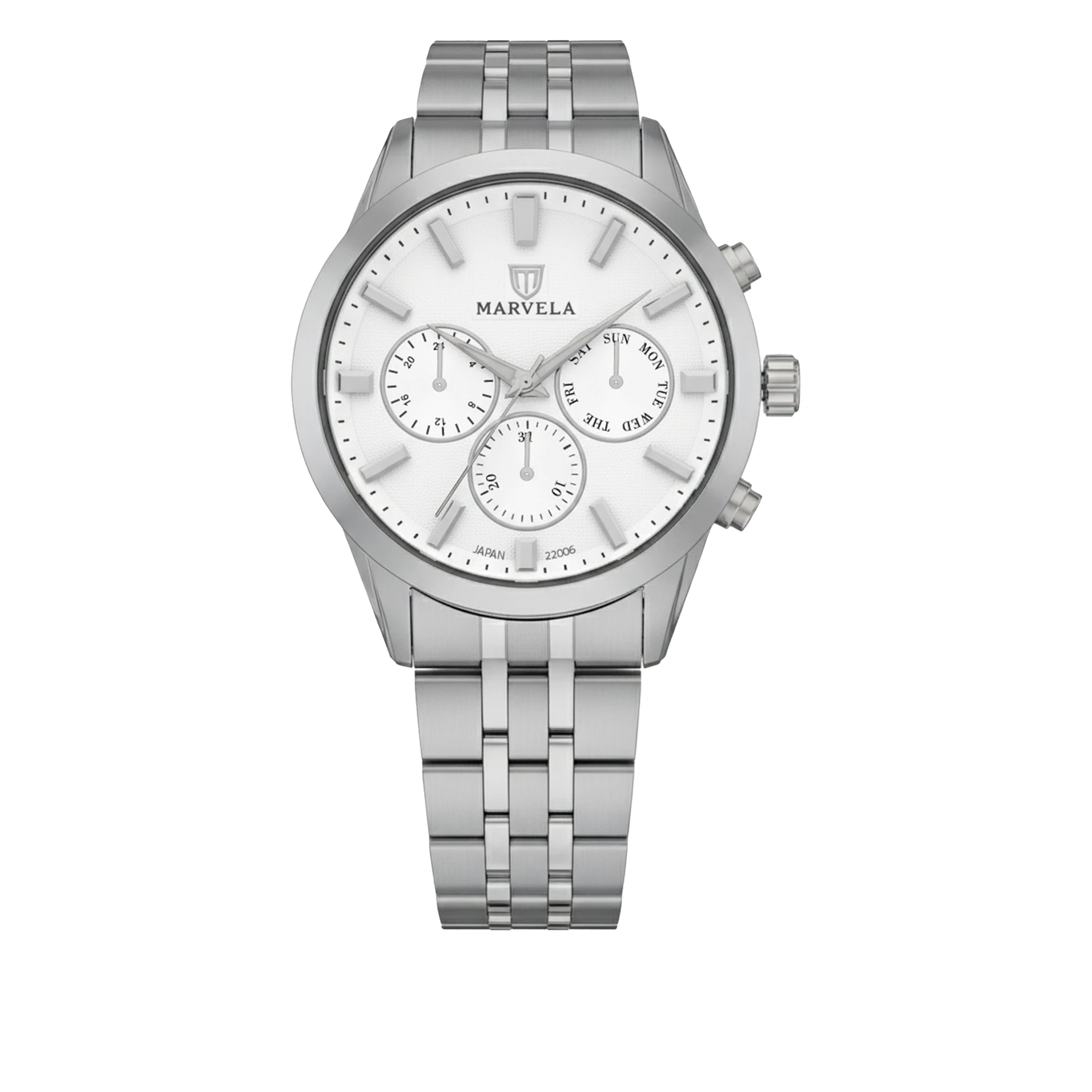 ساعت مارولا مردانه کد MR22006G-0004، ساعتی بسیار زیبا با رفرانس 22006، از نوع کرونوگراف بوده و جنس بند آن، فلزی می باشد. رنگ قاب این محصول، استیل، رنگ بند آن استیل و رنگ صفحه آن سیلور بوده و استایلی زیبا برای شما فراهم می کند.