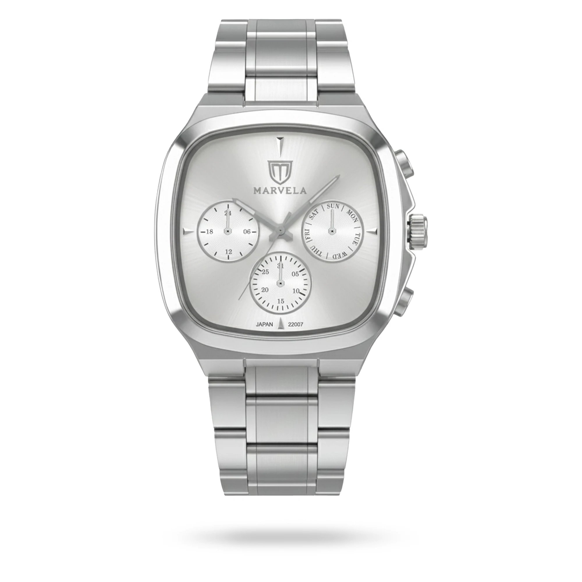 ساعت مارولا مردانه کد MR22007G-0004، ساعتی بسیار زیبا با رفرانس 22007، از نوع کرونوگراف بوده و جنس بند آن، فلزی می باشد. رنگ قاب این محصول، استیل، رنگ بند آن استیل و رنگ صفحه آن سیلور بوده و استایلی زیبا برای شما فراهم می کند.