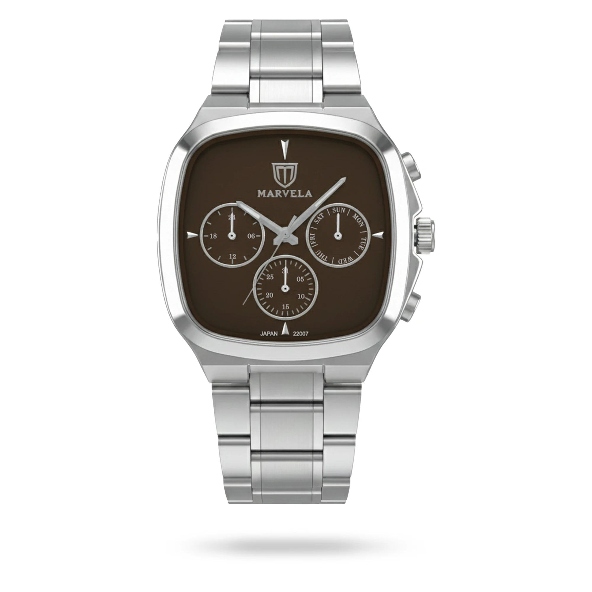 ساعت مارولا مردانه کد MR22007G-0102، ساعتی بسیار زیبا با رفرانس 22007، از نوع کرونوگراف بوده و جنس بند آن، فلزی می باشد. رنگ قاب این محصول، استیل، رنگ بند آن استیل و رنگ صفحه آن قهوه ای بوده و استایلی زیبا برای شما فراهم می کند.
