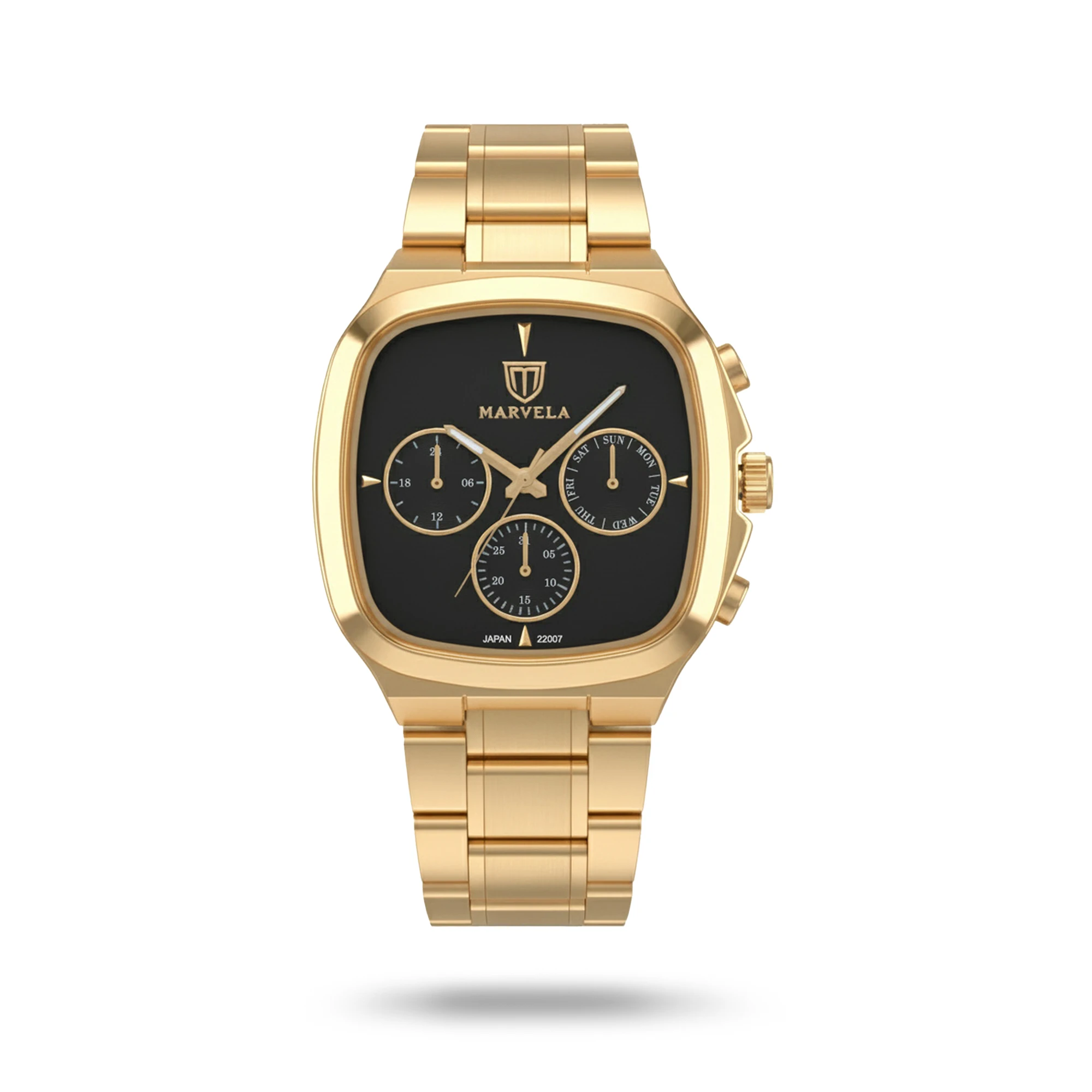 ساعت مارولا زنانه کد MR22007L-0002، ساعتی بسیار زیبا با رفرانس 22007، از نوع کرونوگراف بوده و جنس بند آن، فلزی می باشد. رنگ قاب این محصول، طلایی، رنگ بند آن طلایی و رنگ صفحه آن مشکی بوده و استایلی زیبا برای شما فراهم می کند.
