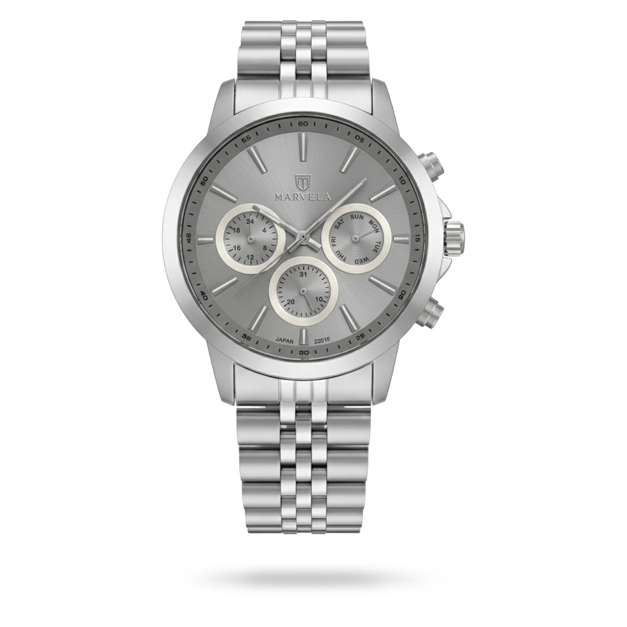 ساعت مارولا مردانه کد MR22015G-0025، ساعتی بسیار زیبا با رفرانس 22015، از نوع کرونوگراف بوده و جنس بند آن، فلزی می باشد. رنگ قاب این محصول، استیل، رنگ بند آن استیل و رنگ صفحه آن طوسی بوده و استایلی زیبا برای شما فراهم می کند.