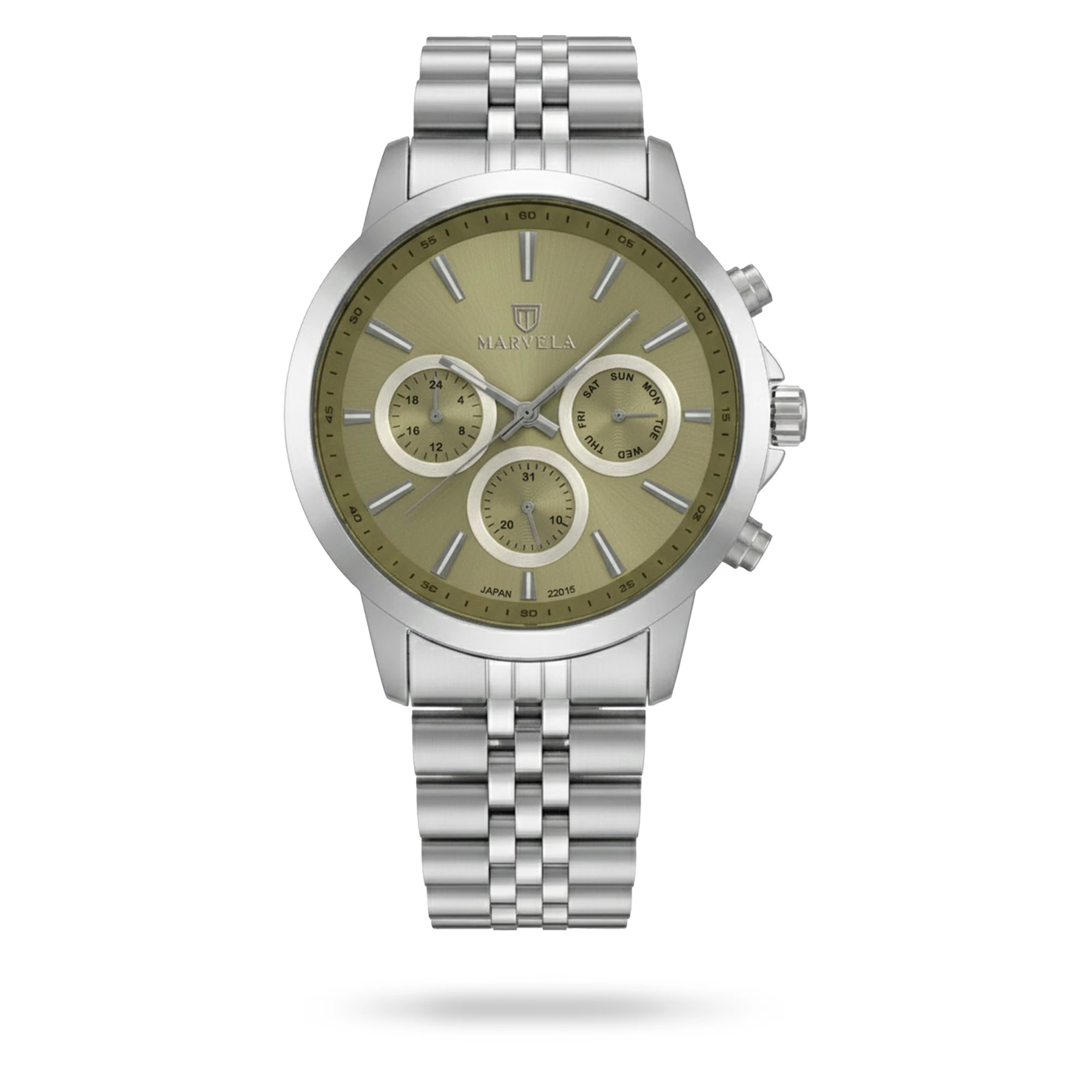 ساعت مارولا مردانه کد MR22015G-0863، ساعتی بسیار زیبا با رفرانس 22015، از نوع کرونوگراف بوده و جنس بند آن، فلزی می باشد. رنگ قاب این محصول، استیل، رنگ بند آن استیل و رنگ صفحه آن پسته ای بوده و استایلی زیبا برای شما فراهم می کند.