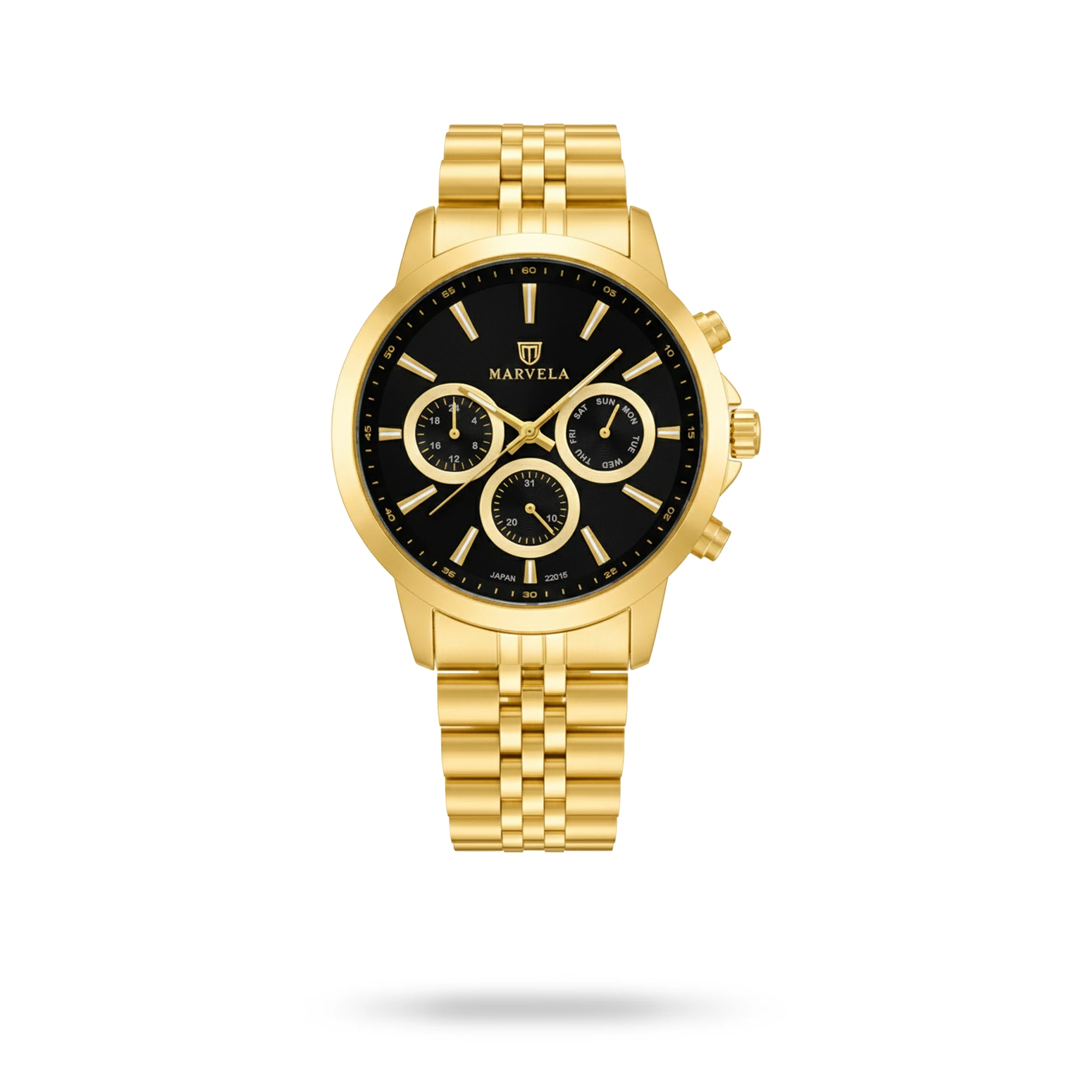 ساعت مارولا زنانه کد MR22015L-0002، ساعتی بسیار زیبا با رفرانس 22015، از نوع کرونوگراف بوده و جنس بند آن، فلزی می باشد. رنگ قاب این محصول، طلایی، رنگ بند آن طلایی و رنگ صفحه آن مشکی بوده و استایلی زیبا برای شما فراهم می کند.