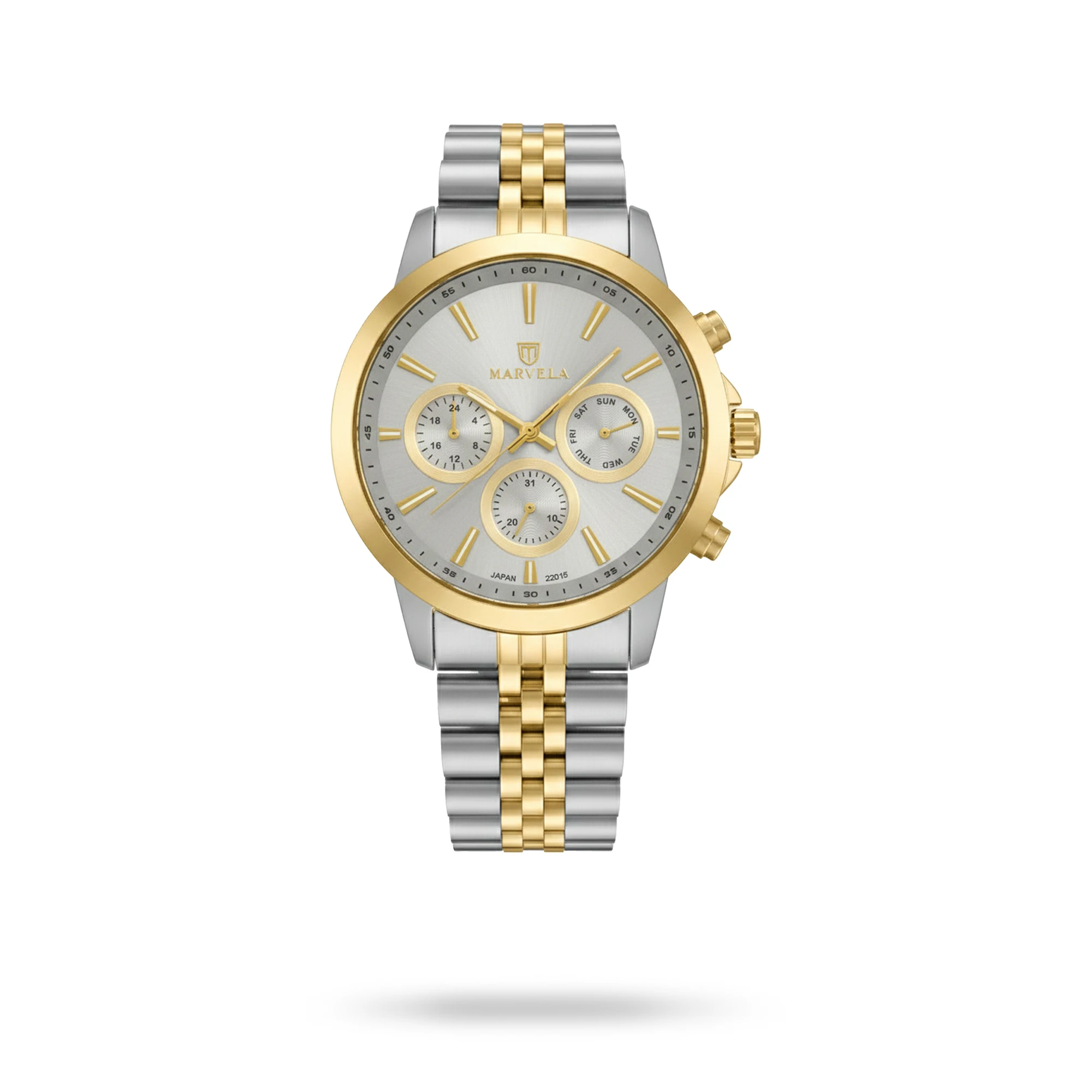 ساعت مارولا زنانه کد MR22015L-0017، ساعتی بسیار زیبا با رفرانس 22015، از نوع کرونوگراف بوده و جنس بند آن، فلزی می باشد. رنگ قاب این محصول، استیل طلایی، رنگ بند آن استیل طلایی و رنگ صفحه آن طوسی بوده و استایلی زیبا برای شما فراهم می کند.