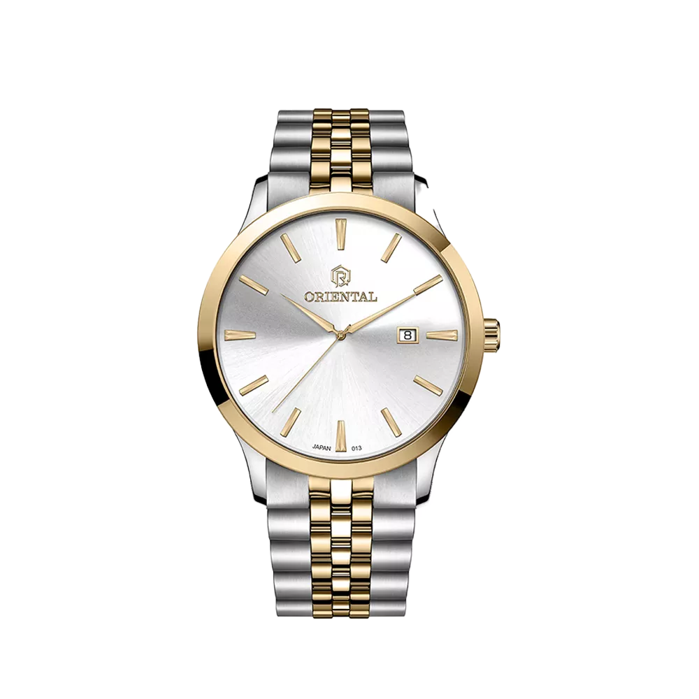 ساعت اورینتال مردانه کد O.SH013G-0003 ، ساعتی بسیار زیبا با رفرانس 013 ، از نوع کلاسیک بوده و جنس بند آن، فلزی می باشد. رنگ قاب این محصول، استیل طلایی، رنگ بند آن استیل طلایی و رنگ صفحه آن سیلور بوده و استایلی زیبا برای شما فراهم می کند.