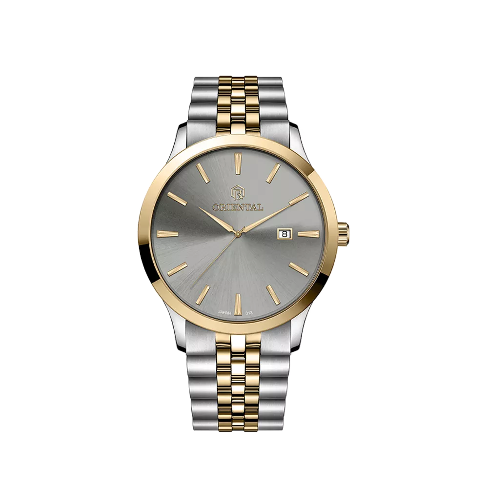 ساعت اورینتال مردانه کد O.SH013G-0017 ، ساعتی بسیار زیبا با رفرانس 013 ، از نوع کلاسیک بوده و جنس بند آن، فلزی می باشد. رنگ قاب این محصول، استیل طلایی، رنگ بند آن استیل طلایی و رنگ صفحه آن خاکستری بوده و استایلی زیبا برای شما فراهم می کند.