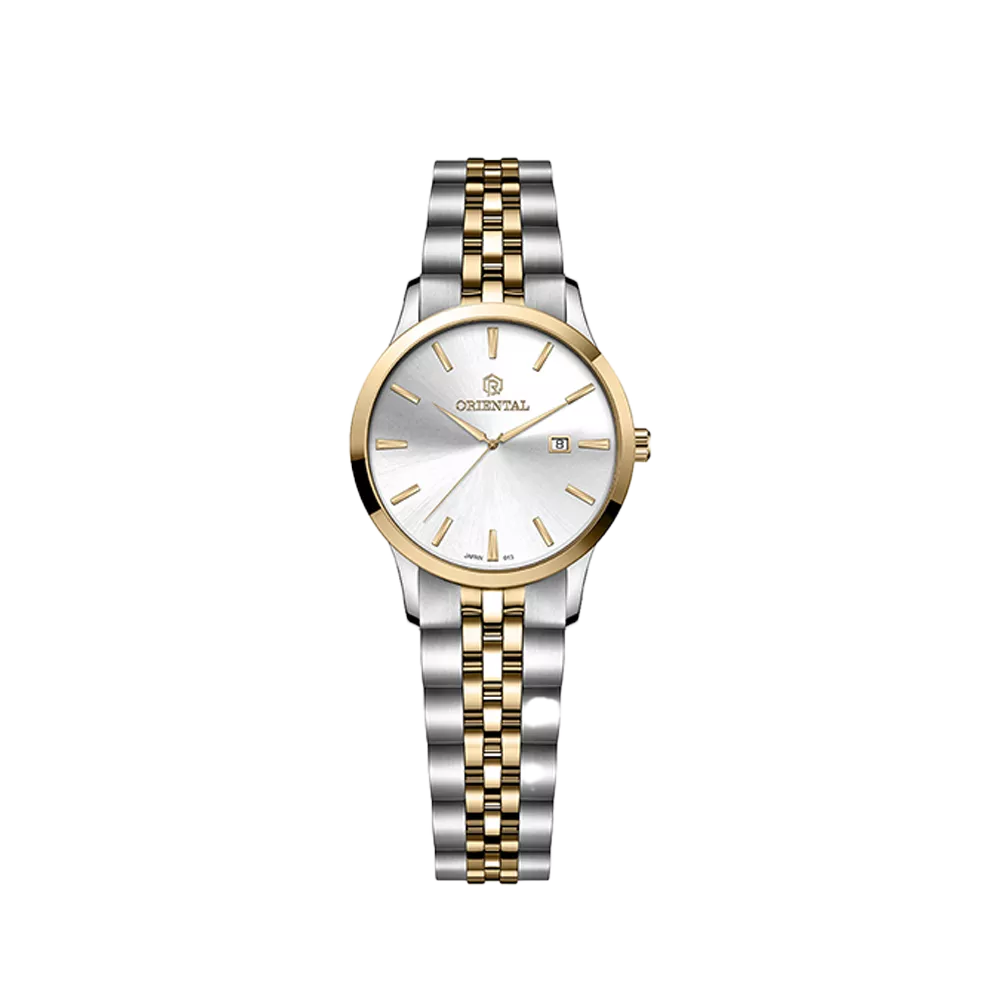 ساعت اورینتال زنانه کد O.SH013L-0003 ، ساعتی بسیار زیبا با رفرانس 013 ، از نوع کلاسیک بوده و جنس بند آن، فلزی می باشد. رنگ قاب این محصول، استیل طلایی، رنگ بند آن استیل طلایی و رنگ صفحه آن سیلور بوده و استایلی زیبا برای شما فراهم می کند.