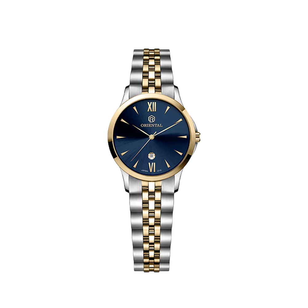 ساعت اورینتال زنانه کد O.SH016L-0101 ، ساعتی بسیار زیبا با رفرانس 016 ، از نوع کلاسیک بوده و جنس بند آن، فلزی می باشد. رنگ قاب این محصول، استیل طلایی، رنگ بند آن استیل طلایی و رنگ صفحه آن سرمه ای بوده و استایلی زیبا برای شما فراهم می کند.