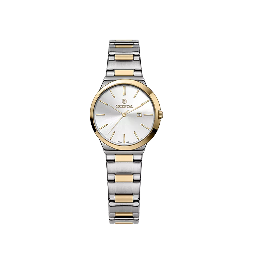 ساعت اورینتال زنانه کد O.SH020L-0003 ، ساعتی بسیار زیبا با رفرانس 020 ، از نوع کلاسیک بوده و جنس بند آن، فلزی می باشد. رنگ قاب این محصول، استیل طلایی، رنگ بند آن استیل طلایی و رنگ صفحه آن سیلور بوده و استایلی زیبا برای شما فراهم می کند.