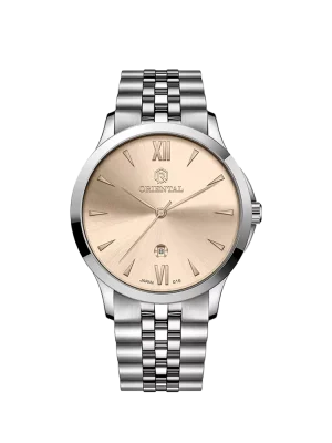 ساعت اورینتال زنانه کد O.SH020L-0016 ، ساعتی بسیار زیبا با رفرانس 020 ، از نوع کلاسیک بوده و جنس بند آن، فلزی می باشد. رنگ قاب این محصول، استیل طلایی، رنگ بند آن استیل طلایی و رنگ صفحه آن شامپاین بوده و استایلی زیبا برای شما فراهم می کند.