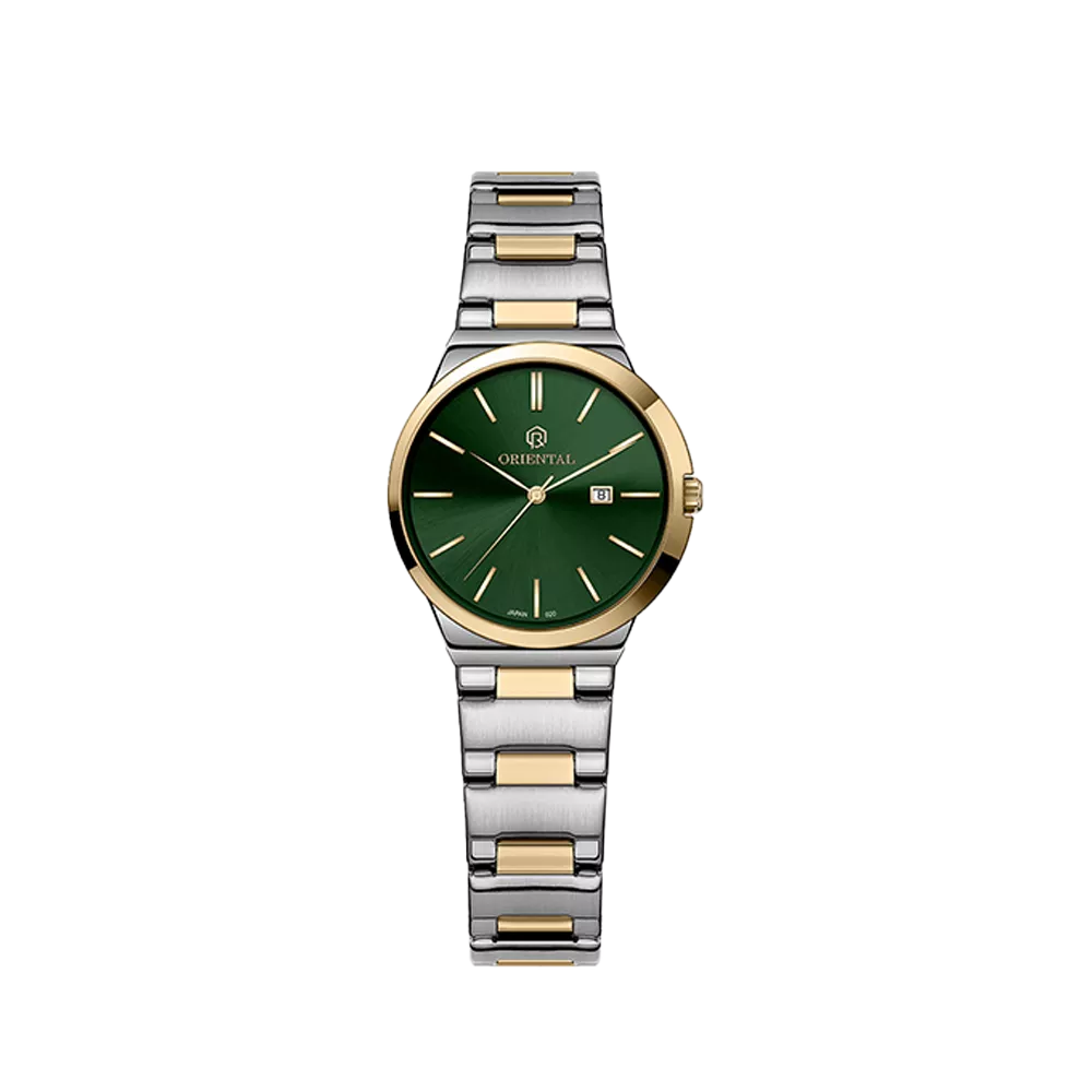 ساعت اورینتال زنانه کد O.SH020L-0102 ، ساعتی بسیار زیبا با رفرانس 020 ، از نوع کلاسیک بوده و جنس بند آن، فلزی می باشد. رنگ قاب این محصول، استیل طلایی، رنگ بند آن استیل طلایی و رنگ صفحه آن سبز بوده و استایلی زیبا برای شما فراهم می کند.