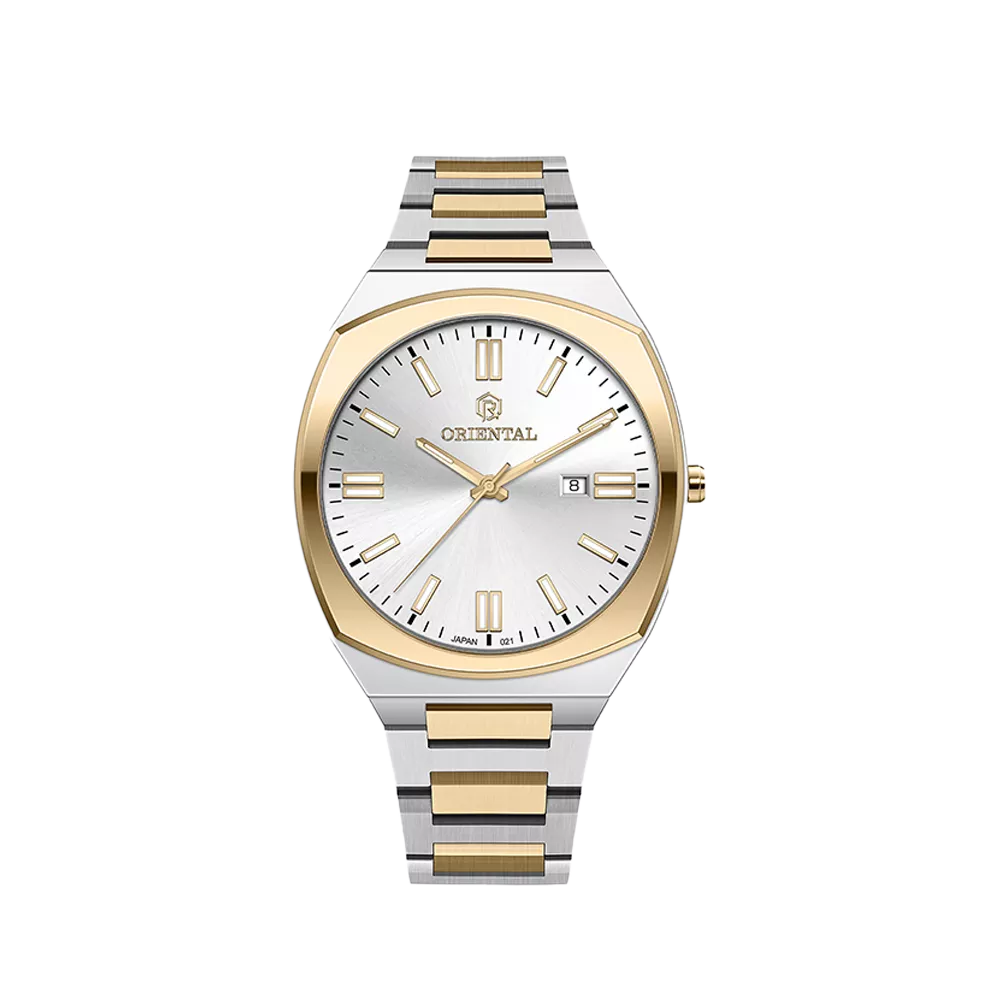 ساعت اورینتال مردانه کد O.SH021G-0003 ، ساعتی بسیار زیبا با رفرانس 021 ، از نوع کلاسیک بوده و جنس بند آن، فلزی می باشد. رنگ قاب این محصول، استیل طلایی، رنگ بند آن استیل طلایی و رنگ صفحه آن سیلور بوده و استایلی زیبا برای شما فراهم می کند.