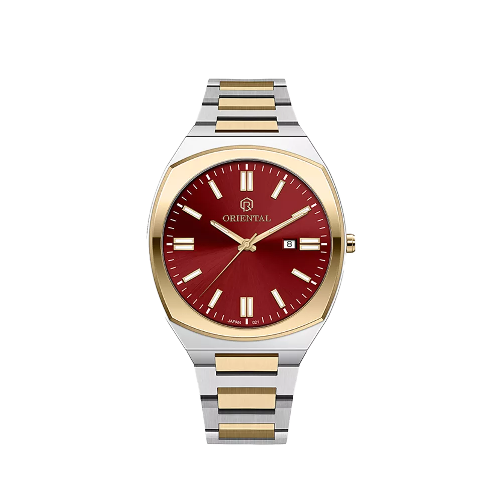 ساعت اورینتال مردانه کد O.SH021G-0413 ، ساعتی بسیار زیبا با رفرانس 021 ، از نوع کلاسیک بوده و جنس بند آن، فلزی می باشد. رنگ قاب این محصول، استیل طلایی، رنگ بند آن استیل طلایی و رنگ صفحه آن زرشکی بوده و استایلی زیبا برای شما فراهم می کند.