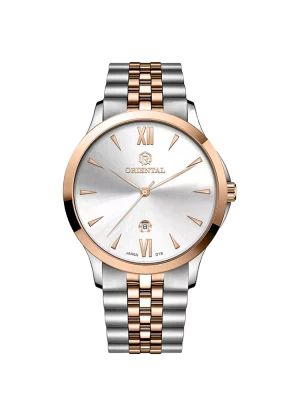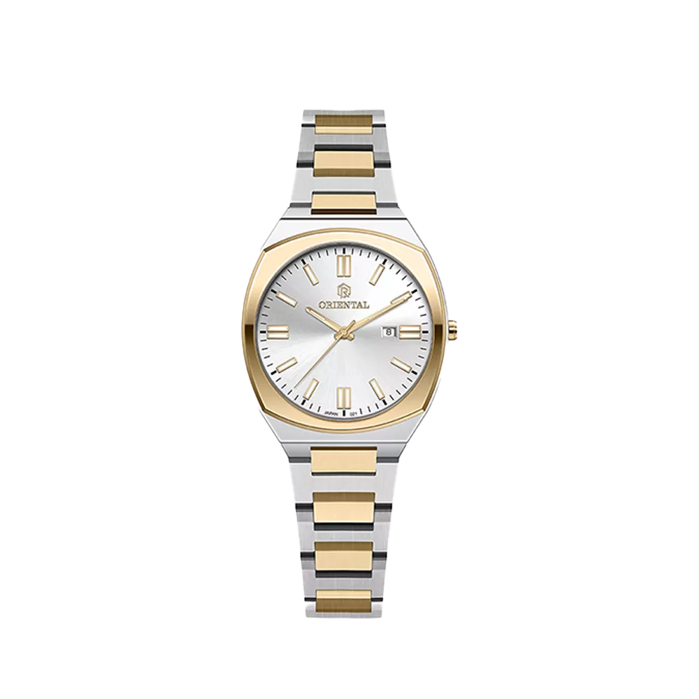 ساعت اورینتال زنانه کد O.SH021L-0003 ، ساعتی بسیار زیبا با رفرانس 021 ، از نوع کلاسیک بوده و جنس بند آن، فلزی می باشد. رنگ قاب این محصول، استیل طلایی، رنگ بند آن استیل طلایی و رنگ صفحه آن سیلور بوده و استایلی زیبا برای شما فراهم می کند.