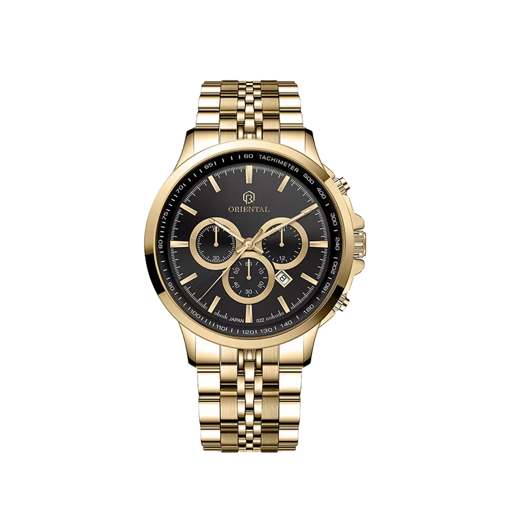 ساعت اورینتال مردانه کد O.SH022G-0002 ، ساعتی بسیار زیبا با رفرانس 022 ، از نوع کرنوگراف بوده و جنس بند آن، فلزی می باشد. رنگ قاب این محصول، طلایی، رنگ بند آن طلایی و رنگ صفحه آن مشکی بوده و استایلی زیبا برای شما فراهم می کند.