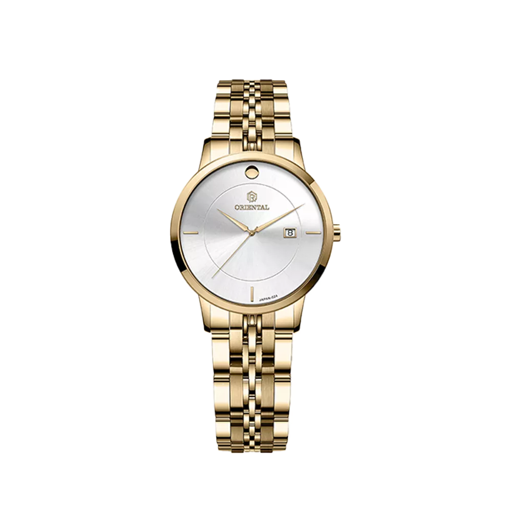 ساعت اورینتال زنانه کد O.SH024L-0001 ، ساعتی بسیار زیبا با رفرانس 024 ، از نوع کلاسیک بوده و جنس بند آن، فلزی می باشد. رنگ قاب این محصول، طلایی، رنگ بند آن طلایی و رنگ صفحه آن سیلور بوده و استایلی زیبا برای شما فراهم می کند.