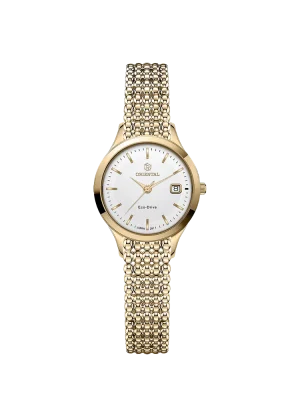ساعت اورینتال زنانه کد O.SH025L-0012 ، ساعتی بسیار زیبا با رفرانس 025 ، از نوع کلاسیک بوده و جنس بند آن، فلزی می باشد. رنگ قاب این محصول، دودی، رنگ بند آن دودی و رنگ صفحه آن سبز بوده و استایلی زیبا برای شما فراهم می کند.