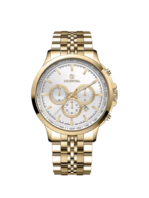 ساعت اورینتال مردانه کد O.SH142G-0020، ساعتی بسیار زیبا با رفرانس 142، از نوع کرنوگراف بوده و جنس بند آن، فلزی می باشد. رنگ قاب این محصول، دودی، رنگ بند آن دودی و رنگ صفحه آن سرمه ای بوده و استایلی زیبا برای شما فراهم می کند.