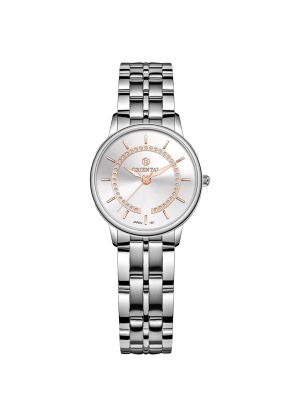 ساعت اورینتال زنانه کد O.SH147L-0075، ساعتی بسیار زیبا با رفرانس 147، از نوع کلاسیک بوده و جنس بند آن، فلزی می باشد. رنگ قاب این محصول، مشکی، رنگ بند آن مشکی رزگلد و رنگ صفحه آن طوسی بوده و استایلی زیبا برای شما فراهم می کند.