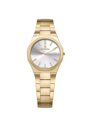 ساعت اورینتال زنانه کد O.SH157L-0004، ساعتی بسیار زیبا با رفرانس 157، از نوع کلاسیک بوده و جنس بند آن، فلزی می باشد. رنگ قاب این محصول، استیل، رنگ بند آن استیل و رنگ صفحه آن سیلور بوده و استایلی زیبا برای شما فراهم می کند.