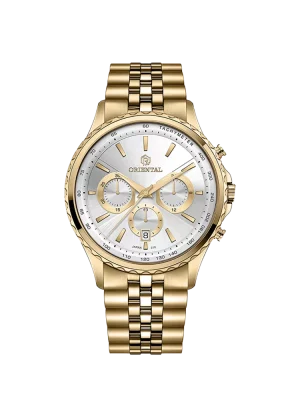 ساعت اورینتال زنانه کد O.SH158L-0001، ساعتی بسیار زیبا با رفرانس 158، از نوع کرنوگراف بوده و جنس بند آن، فلزی می باشد. رنگ قاب این محصول، طلایی، رنگ بند آن طلایی و رنگ صفحه آن سیلور بوده و استایلی زیبا برای شما فراهم می کند.