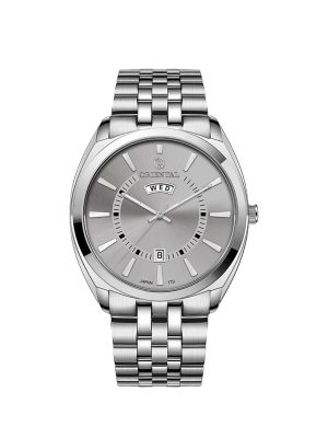 ساعت اورینتال مردانه کد O.SH170G-0025، ساعتی بسیار زیبا با رفرانس 170، از نوع کلاسیک بوده و جنس بند آن، فلزی می باشد. رنگ قاب این محصول، استيل، رنگ بند آن استيل و رنگ صفحه آن طوسي بوده و استایلی زیبا برای شما فراهم می کند.