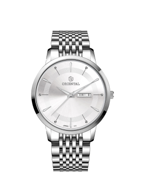 ساعت اورینتال مردانه کد O.SH171G-0101، ساعتی بسیار زیبا با رفرانس 171، از نوع کلاسیک بوده و جنس بند آن، فلزی می باشد. رنگ قاب این محصول، استیل طلایی، رنگ بند آن استیل طلایی و رنگ صفحه آن سرمه ای بوده و استایلی زیبا برای شما فراهم می کند.