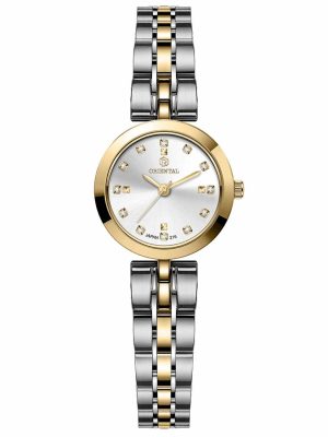 ساعت اورینتال زنانه کد O.SH178L-0002، ساعتی بسیار زیبا با رفرانس 178، از نوع کلاسیک بوده و جنس بند آن، فلزی می باشد. رنگ قاب این محصول، طلايي، رنگ بند آن طلايي و رنگ صفحه آن مشکي بوده و استایلی زیبا برای شما فراهم می کند.