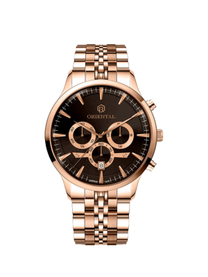 ساعت اورینتال مردانه کد O.SH184G-0107، ساعتی بسیار زیبا با رفرانس 184، از نوع کلاسیک بوده و جنس بند آن، فلزی می باشد. رنگ قاب این محصول، مشکی سرمه ای، رنگ بند آن سرمه ای و رنگ صفحه آن سرمه ای بوده و استایلی زیبا برای شما فراهم می کند.