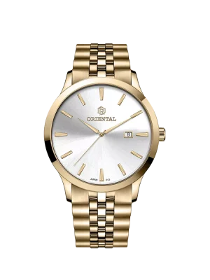 ساعت اورینتال مردانه کد O.SH195G-0017، ساعتی بسیار زیبا با رفرانس 195، از نوع کرنوگراف بوده و جنس بند آن، فلزی می باشد. رنگ قاب این محصول، استیل طلایی، رنگ بند آن استیل طلایی و رنگ صفحه آن طوسی بوده و استایلی زیبا برای شما فراهم می کند.