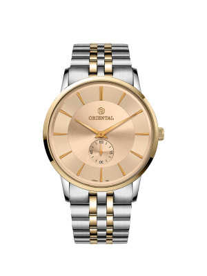 ساعت اورینتال زنانه کد O.SH199L-0001 ، ساعتی بسیار زیبا با رفرانس 199 ، از نوع کلاسیک بوده و جنس بند آن، فلزی می باشد. رنگ قاب این محصول، طلایی ، رنگ بند آن طلایی و رنگ صفحه آن سیلور بوده و استایلی زیبا برای شما فراهم می کند.