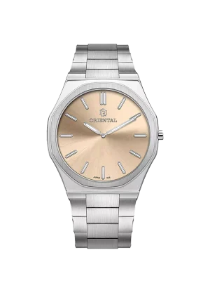 ساعت اورینتال مردانه کد O.SH210G-0006 ساعتی بسیار زیبا با رفرانس 210، از نوع کلاسیک – اکودرایو بوده و جنس بند آن، فلزی می باشد.رنگ قاب این محصول استیل رزگلد رنگ بند استیل رزگلد رنگ صفحه سیلور بوده و استایلی زیبا برای شما فراهم می کند.